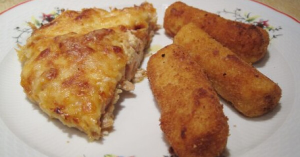 Forró sütőben megsütjük. Burgonyakrokettel tálaljuk.